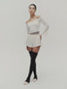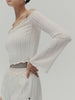 - Relaxed bell sleeves complement the form-fitting, waist-defining silhouette.
